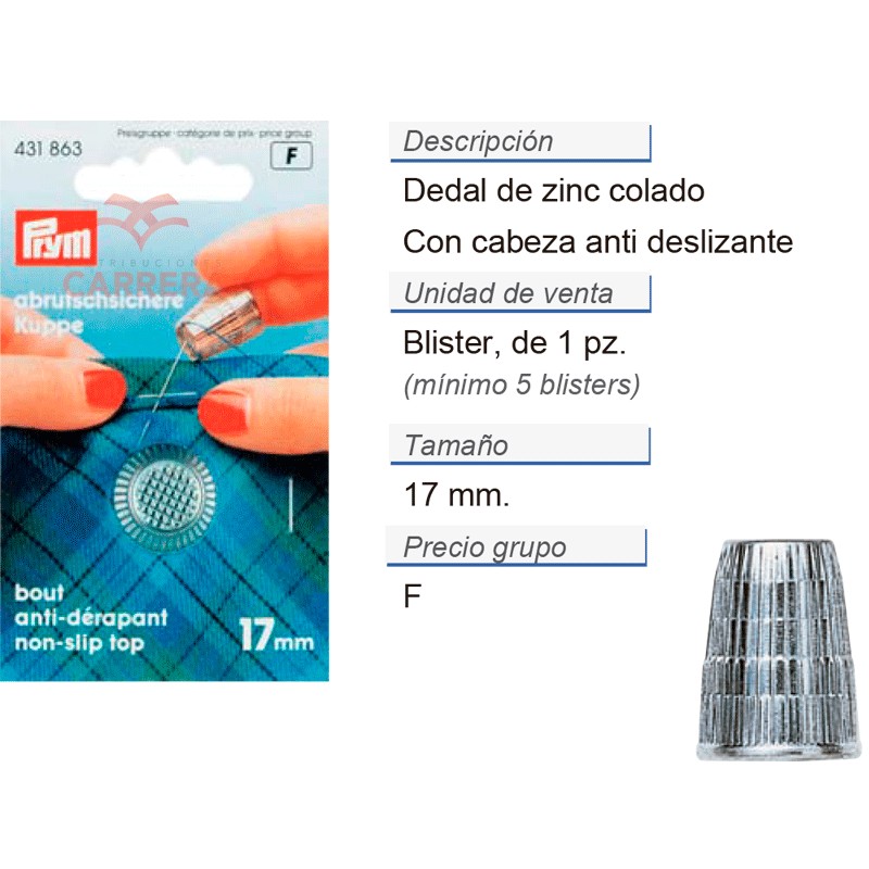 Dedales zinc colado 17,0 mm galvanizado CONT: 5 TAR de 1 pz